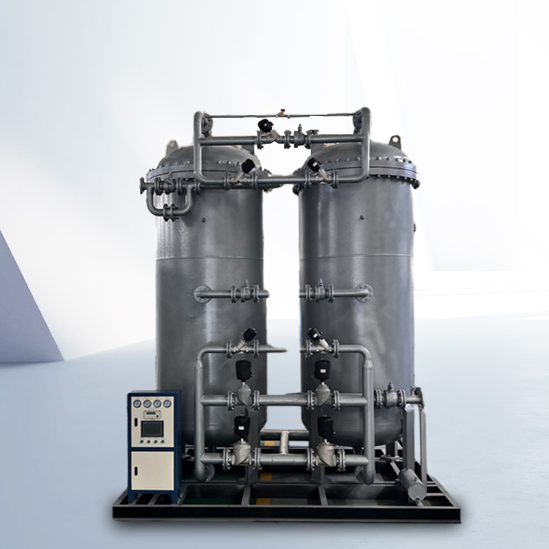 A nitrogen generator refers to a nitrogen production equipment designed and manufactured using pressure swing adsorption technology,which uses air as raw material and physically separates oxygen and nitrogen to obtain nitrogen.The nitrogen generator uses excellent carbon molecular sieves as adsorbents and uses the principle of pressure swing adsorption(PSA)at room temperature to separate air and produce high-purity nitrogen.Usually,two adsorption towers are connected in parallel,and the imported pneumatic valve is controlled by a PLC to automatically operate,alternating between pressurized adsorption and decompression regeneration,to complete nitrogen oxygen separation and obtain the required high-purity nitrogen.