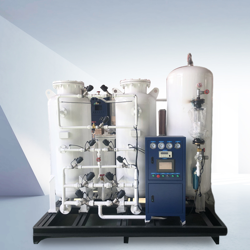 A nitrogen generator refers to a nitrogen production equipment designed and manufactured using pressure swing adsorption technology,which uses air as raw material and physically separates oxygen and nitrogen to obtain nitrogen.The nitrogen generator uses excellent carbon molecular sieves as adsorbents and uses the principle of pressure swing adsorption(PSA)at room temperature to separate air and produce high-purity nitrogen.Usually,two adsorption towers are connected in parallel,and the imported pneumatic valve is controlled by a PLC to automatically operate,alternating between pressurized adsorption and decompression regeneration,to complete nitrogen oxygen separation and obtain the required high-purity nitrogen.