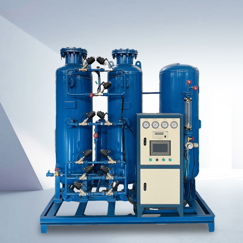 A nitrogen generator refers to a nitrogen production equipment designed and manufactured using pressure swing adsorption technology,which uses air as raw material and physically separates oxygen and nitrogen to obtain nitrogen.The nitrogen generator uses excellent carbon molecular sieves as adsorbents and uses the principle of pressure swing adsorption(PSA)at room temperature to separate air and produce high-purity nitrogen.Usually,two adsorption towers are connected in parallel,and the imported pneumatic valve is controlled by a PLC to automatically operate,alternating between pressurized adsorption and decompression regeneration,to complete nitrogen oxygen separation and obtain the required high-purity nitrogen.